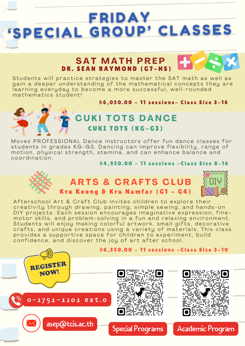 ASEP registrations will be done through this website. Please click the relevant program registration form below. After sign-up is completed and submitted, you will receive a confirmation email with payment details. All payments are to be made to the TCIS Cashier by cash, credit or bank transfer.