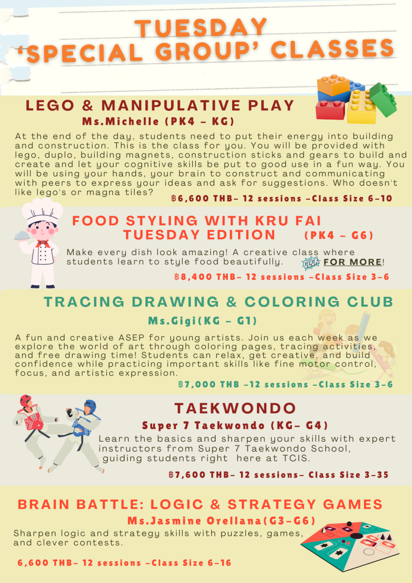 ASEP registrations will be done through this website. Please click the relevant program registration form below. After sign-up is completed and submitted, you will receive a confirmation email with payment details. All payments are to be made to the TCIS Cashier by cash, credit or bank transfer.